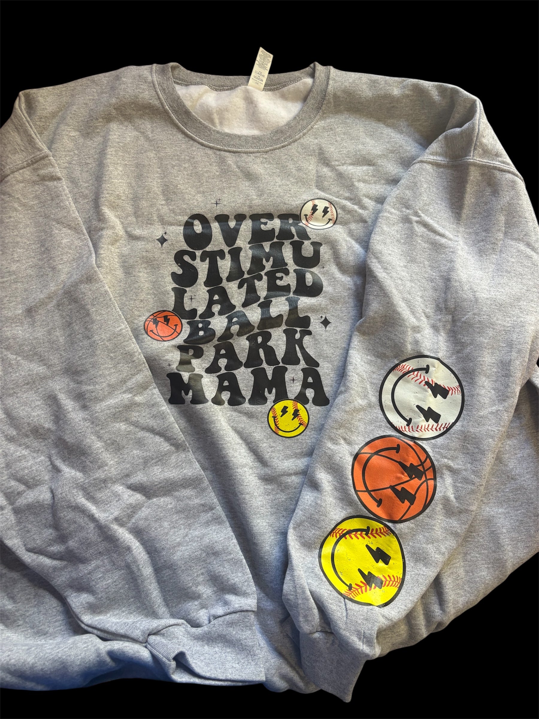 Over stimulated ball park Mama basketball baseball softball jerzee nublend heather gray crewneck