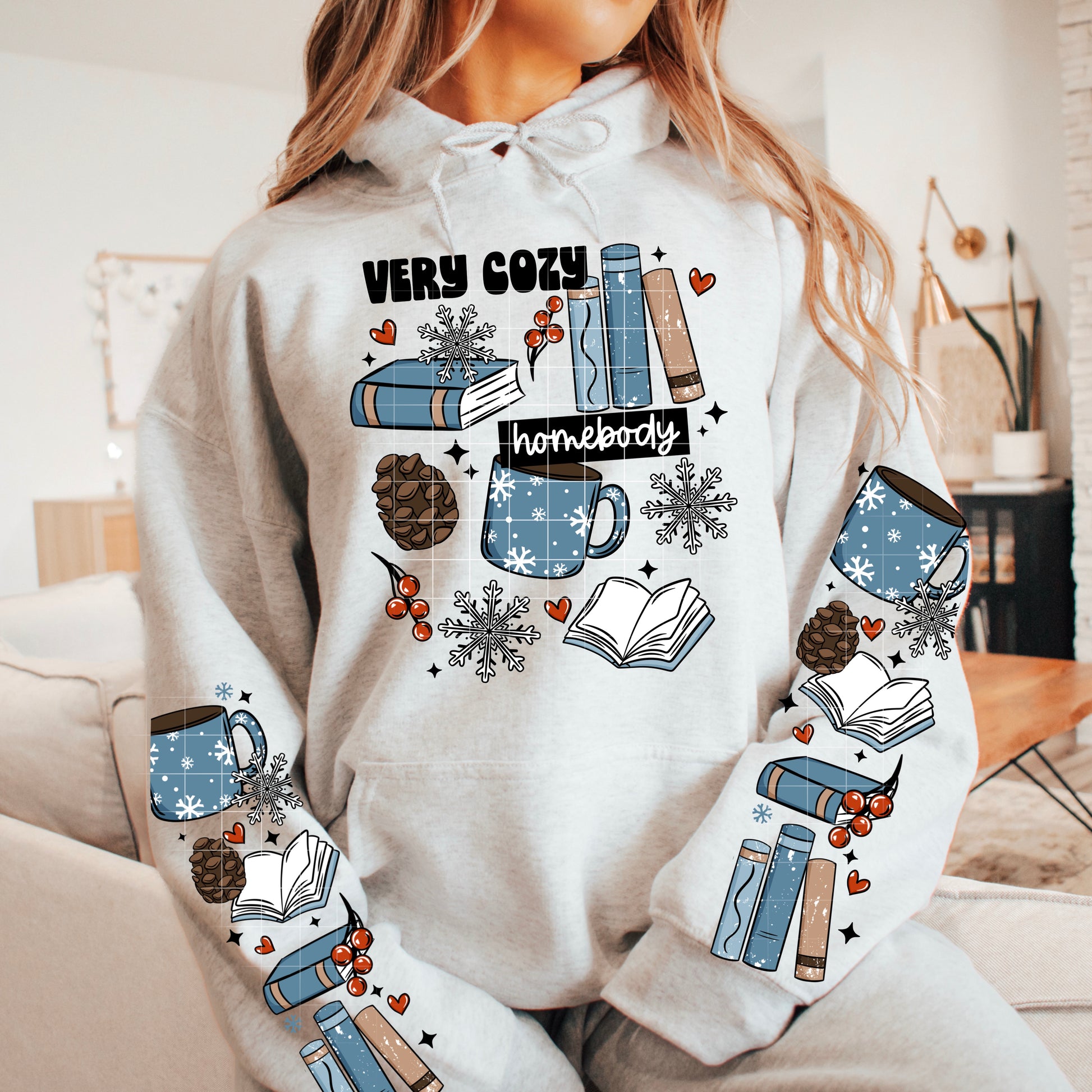 Wrap yourself in comfort with our “Very Cozy Homebody” graphic hoodie — made for book lovers, coffee sippers, and stay-at-home souls who live for cozy days. Featuring adorable winter-inspired illustrations like stacked books, a warm mug, snowflakes, pinecones, and little hearts, this design is perfect for anyone whose favorite plans involve a blanket and a good story.
